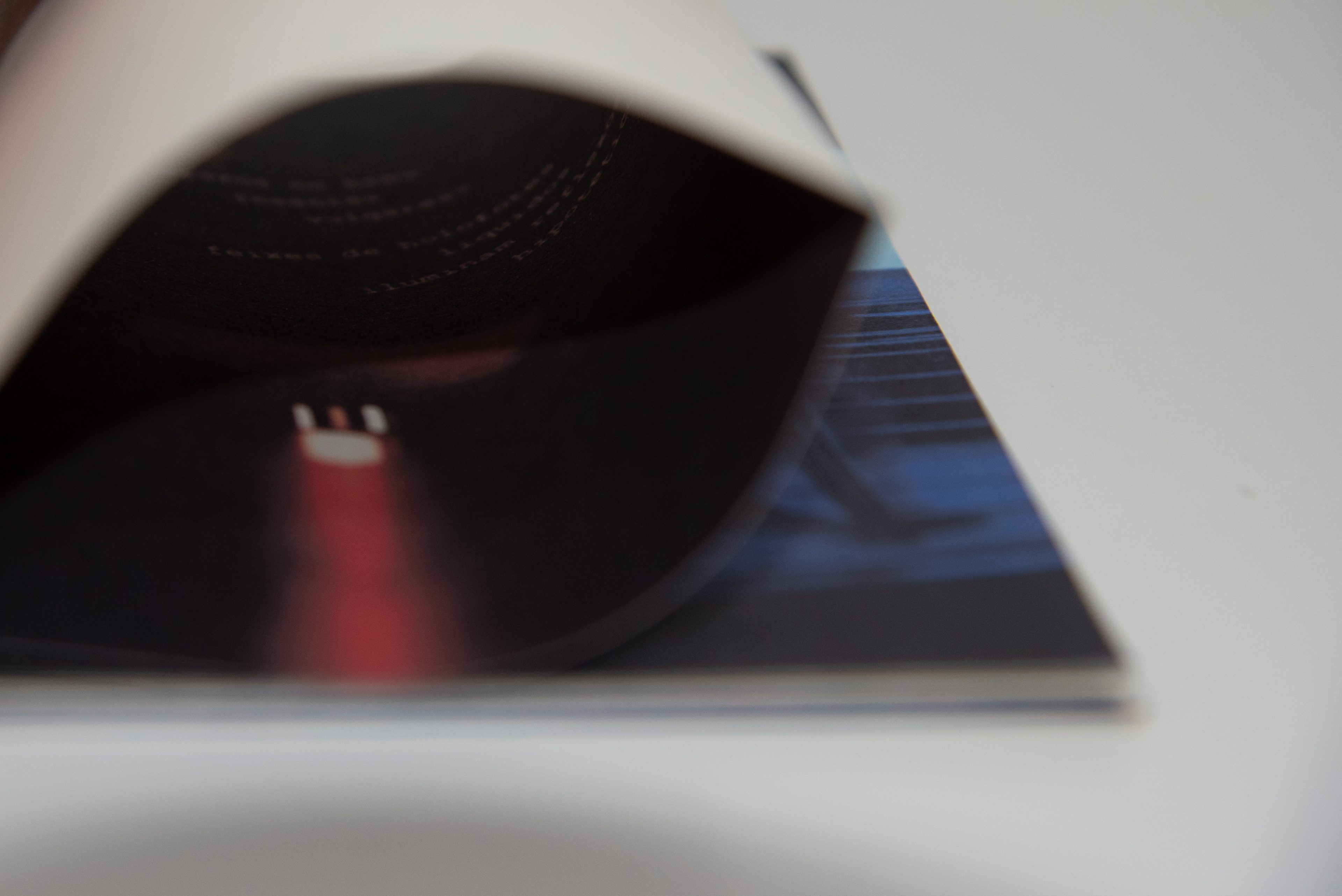 Primeira edição, de 20 exemplares. Todo o processo de impressão, encadernação e acabamento foi feito pela própria autora; o papel da capa é o Markatto Concetto Natural 250g/m² e o miolo é o Pólen Bold 90g/m², fonte Courier New Bold.